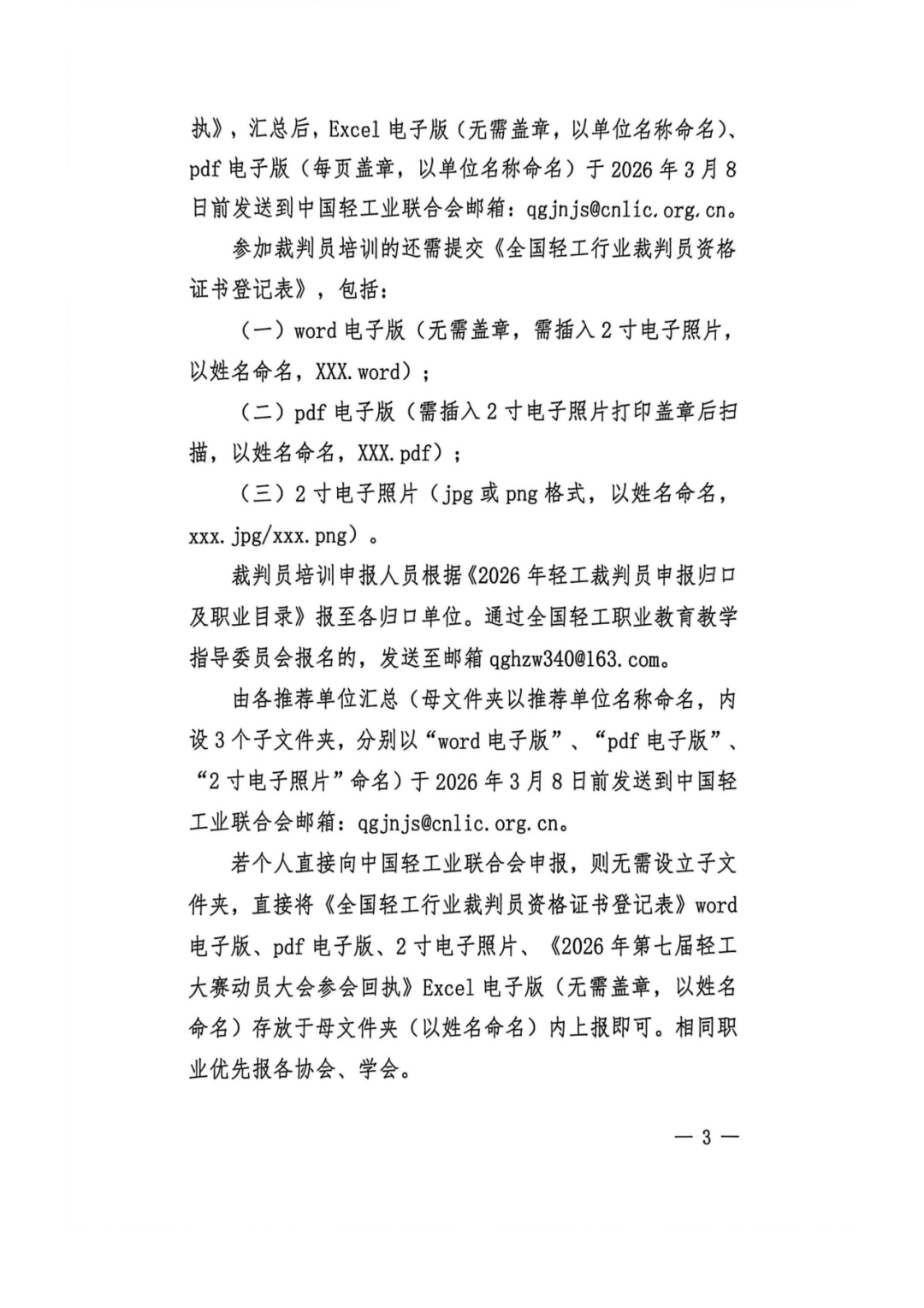 通知 | 关于举办2026年全国行业职业技能竞赛——第七届轻工大赛动员大会暨全国轻工行业裁判员培训的通知